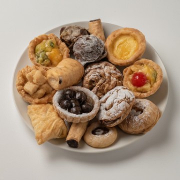 <p>Selection of artisan cookies garnished with chocolates.</p>